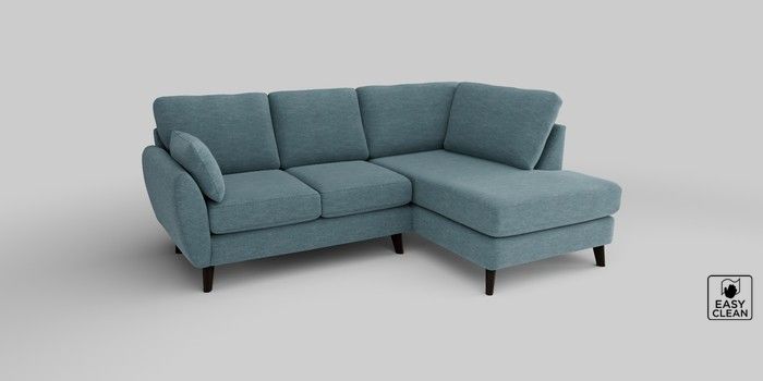 6.12.1 Buy Wilson Medium Corner Chaise - Right Hand Fine Chenille Easy Clean Mid Blue Retro Tapered - Dark from the Next UK online shop Click here to use our accessible website