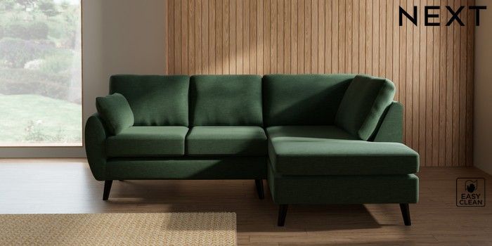 7.3.1 Buy Wilson Medium Corner Chaise - Right Hand Fine Chenille Easy Clean Mid Khaki Green Retro Tapered - Dark from the Next UK online shop