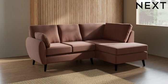 7.2.10 Buy Wilson Medium Corner Chaise - Right Hand Relaxed Linen Look Light Rust Brown Retro Tapered - Dark from the Next UK online shop Click here to use our accessible website