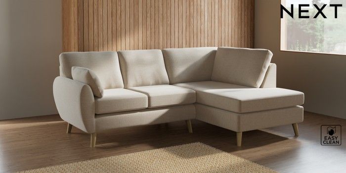 7.2.10 Buy Wilson Medium Corner Chaise - Right Hand Fine Chenille Easy Clean Oyster Retro Tapered - Light from the Next UK online shop Click here to use our accessible website
