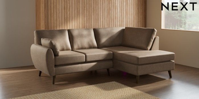 7.2.10 Buy Wilson Medium Corner Chaise - Right Hand Luxe Chenille Mid Camel Beige Retro Tapered - Mid from the Next UK online shop Click here to use our accessible website