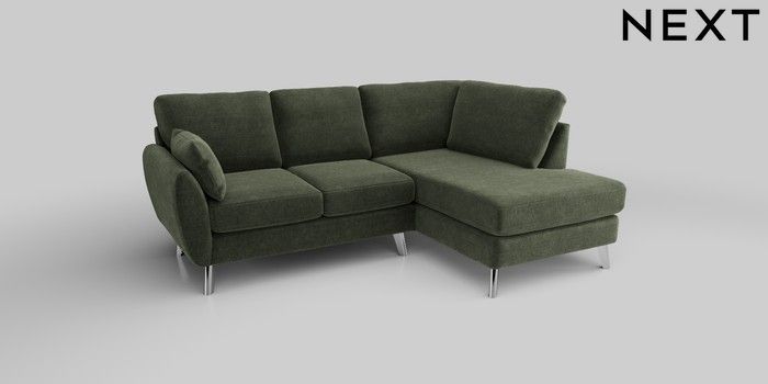 6.12.1 Buy Wilson Medium Corner Chaise - Right Hand Luxe Chenille Mid Green Metal Tapered - Chrome from the Next UK online shop Click here to use our accessible website