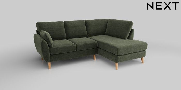 6.12.1 Buy Wilson Medium Corner Chaise - Right Hand Luxe Chenille Mid Green Retro Tapered - Light from the Next UK online shop Click here to use our accessible website