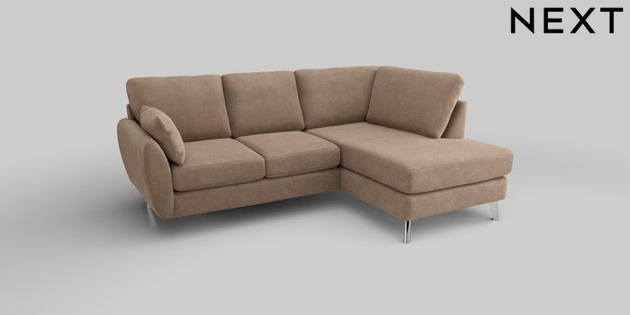 6.12.1 Buy Wilson Medium Corner Chaise - Right Hand Luxe Chenille Mid Natural Metal Tapered - Chrome from the Next UK online shop Click here to use our accessible website