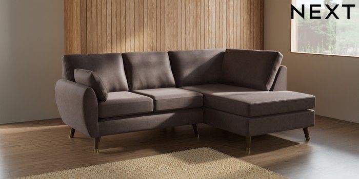 7.3.1 Buy Wilson Medium Corner Chaise - Right Hand Luxe Chenille Mink Brown Low Retro Tapered Metal Cap - Mid from the Next UK online shop Click here to use our accessible website