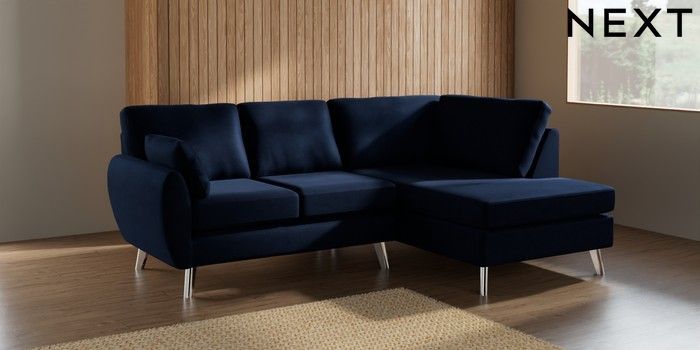 7.2.10 Buy Wilson Medium Corner Chaise - Right Hand Luxe Chenille Navy Blue Metal Tapered - Chrome from the Next UK online shop Click here to use our accessible website