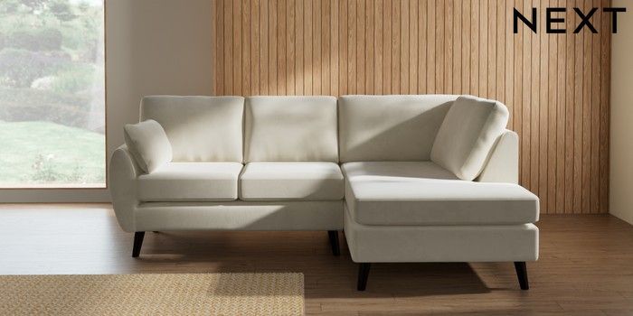 7.3.8 Buy Wilson Medium Corner Chaise - Right Hand Luxe Chenille Oyster Retro Tapered - Dark from the Next UK online shop