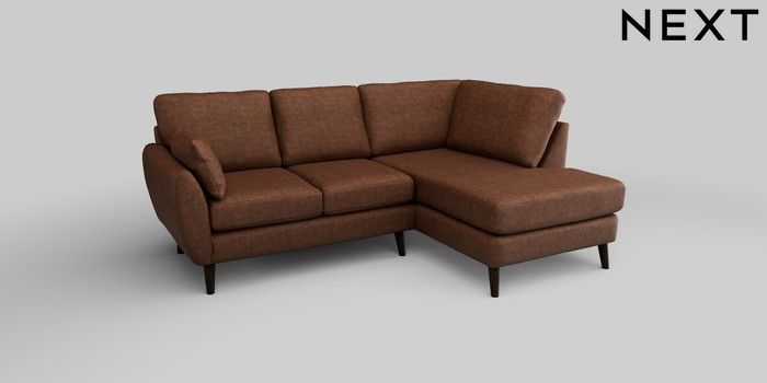 6.12.1 Buy Wilson Medium Corner Chaise - Right Hand Monza Faux Leather Easy Clean Chestnut Brown Retro Tapered - Dark from the Next UK online shop Click here to use our accessible website