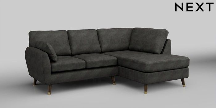 6.12.1 Buy Wilson Medium Corner Chaise - Right Hand Monza Faux Leather Easy Clean Dark Grey Low Retro Tapered Metal Cap - Mid from the Next UK online shop Click here to use our accessible website