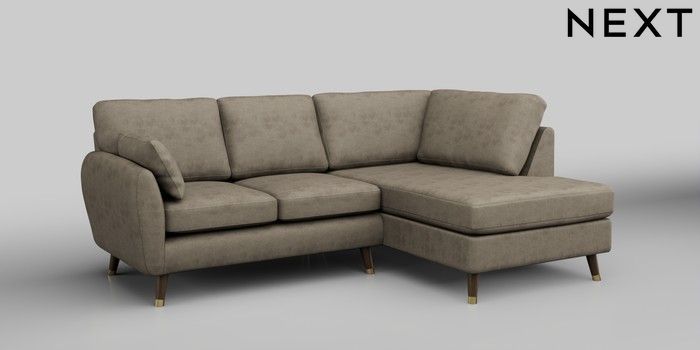 6.12.1 Buy Wilson Medium Corner Chaise - Right Hand Monza Faux Leather Easy Clean Mink Brown Low Retro Tapered Metal Cap - Mid from the Next UK online shop Click here to use our accessible website