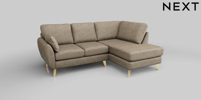 6.12.1 Buy Wilson Medium Corner Chaise - Right Hand Monza Faux Leather Easy Clean Mink Brown Metal Tapered - Gold from the Next UK online shop Click here to use our accessible website