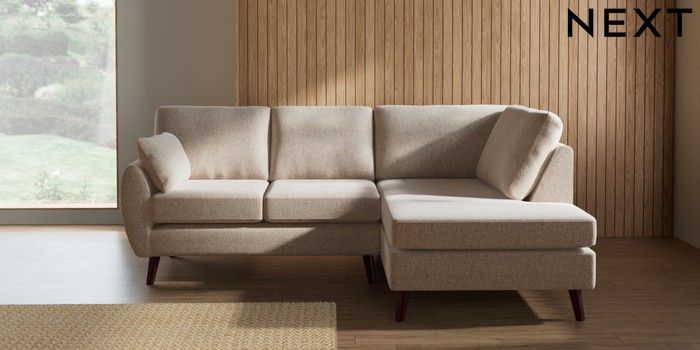 7.3.1 Buy Wilson Medium Corner Chaise - Right Hand Multi Weave Mid Natural Retro Tapered - Dark Brown from the Next UK online shop