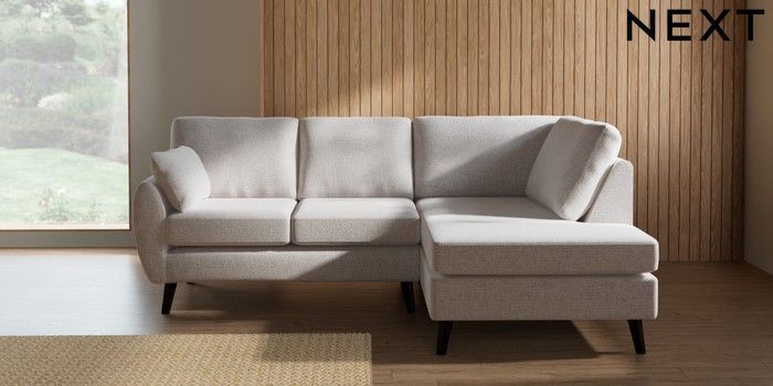 7.3.1 Buy Wilson Medium Corner Chaise - Right Hand Multi Weave Oyster Retro Tapered - Dark from the Next UK online shop