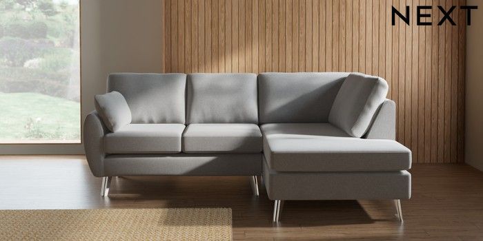 7.3.1 Buy Wilson Medium Corner Chaise - Right Hand Natural Mix Light Grey Metal Tapered - Chrome from the Next UK online shop