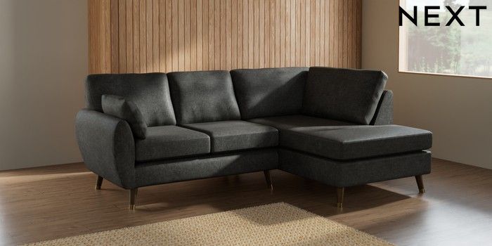 7.3.1 Buy Wilson Medium Corner Chaise - Right Hand Plush Chenille Dark Grey Low Retro Tapered Metal Cap - Mid from the Next UK online shop