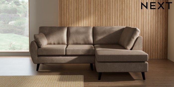 7.3.1 Buy Wilson Medium Corner Chaise - Right Hand Plush Chenille Mid Natural Retro Tapered - Dark from the Next UK online shop