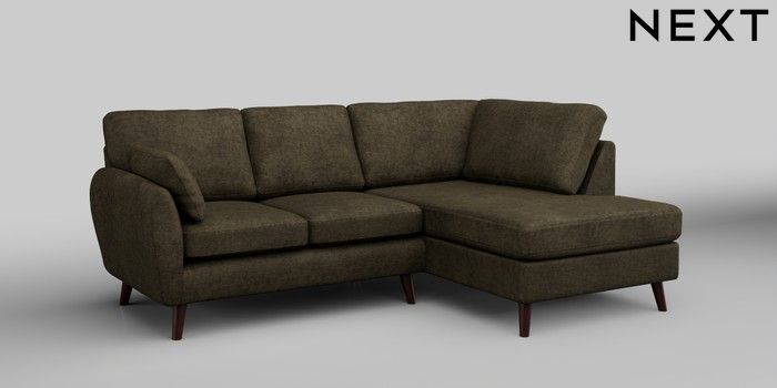 6.12.1 Buy Wilson Medium Corner Chaise - Right Hand Plush Chenille Moss Green Retro Tapered - Dark Brown from the Next UK online shop Click here to use our accessible website