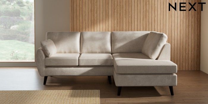 7.3.1 Buy Wilson Medium Corner Chaise - Right Hand Plush Chenille Oyster Retro Tapered - Dark from the Next UK online shop