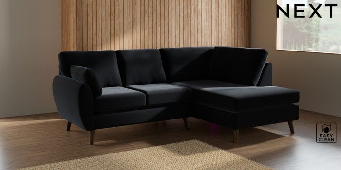 7.3.1 Buy Wilson Medium Corner Chaise - Right Hand Plush Velvet Easy Clean Charcoal Grey Retro Tapered - Mid from the Next UK online shop Click here to use our accessible website
