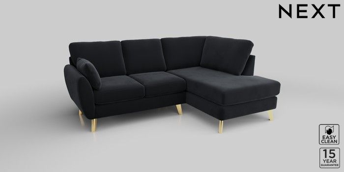 6.12.1 Buy Wilson Medium Corner Chaise - Right Hand Plush Velvet Easy Clean Charcoal Grey Metal Tapered - Gold from the Next UK online shop Click here to use our accessible website