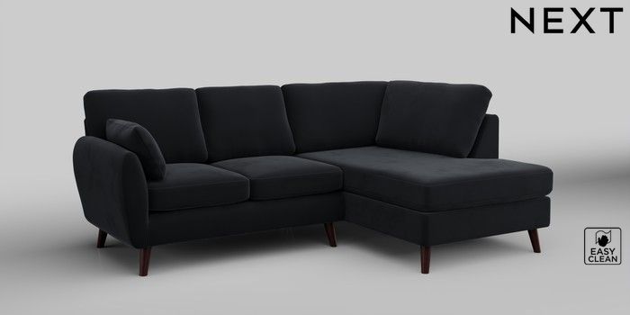 6.12.1 Buy Wilson Medium Corner Chaise - Right Hand Plush Velvet Easy Clean Charcoal Grey Retro Tapered - Dark Brown from the Next UK online shop Click here to use our accessible website