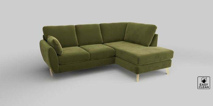 6.12.1 Buy Wilson Medium Corner Chaise - Right Hand Plush Velvet Easy Clean Mid Olive Green Metal Tapered - Gold from the Next UK online shop Click here to use our accessible website
