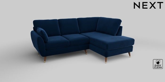 6.12.1 Buy Wilson Medium Corner Chaise - Right Hand Plush Velvet Easy Clean Navy Blue Low Retro Tapered Metal Cap - Mid from the Next UK online shop Click here to use our accessible website