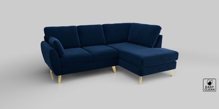 6.12.1 Buy Wilson Medium Corner Chaise - Right Hand Plush Velvet Easy Clean Navy Blue Metal Tapered - Gold from the Next UK online shop Click here to use our accessible website