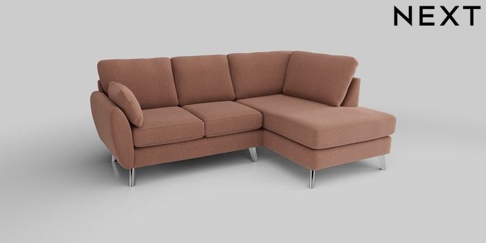 6.12.13 Buy Wilson Medium Corner Chaise - Right Hand Relaxed Linen Look Light Rust Brown Metal Tapered - Chrome from the Next UK online shop Click here to use our accessible website