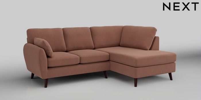 6.12.1 Buy Wilson Medium Corner Chaise - Right Hand Relaxed Linen Look Light Rust Brown Retro Tapered - Dark Brown from the Next UK online shop Click here to use our accessible website