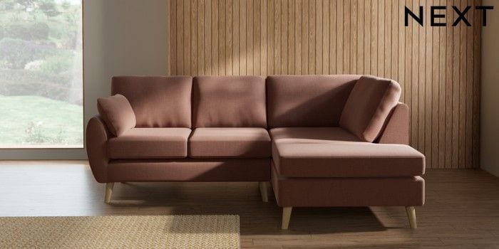 7.3.1 Buy Wilson Medium Corner Chaise - Right Hand Relaxed Linen Look Light Rust Brown Retro Tapered - Light from the Next UK online shop