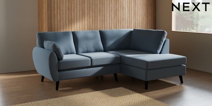 7.2.10 Buy Wilson Medium Corner Chaise - Right Hand Relaxed Linen Look Mid Blue Retro Tapered - Dark from the Next UK online shop Click here to use our accessible website