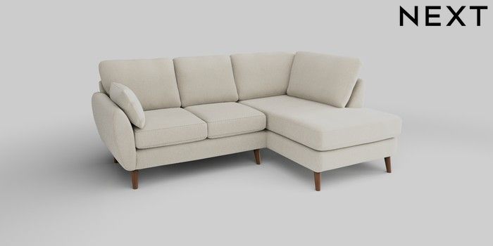 6.12.1 Buy Wilson Medium Corner Chaise - Right Hand Relaxed Linen Look Oyster Retro Tapered - Mid from the Next UK online shop Click here to use our accessible website