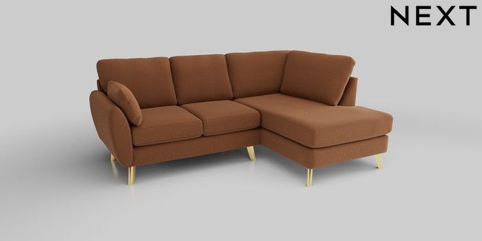 6.12.1 Buy Wilson Medium Corner Chaise - Right Hand Ripple Chenille Mid Rust Brown Metal Tapered - Gold from the Next UK online shop Click here to use our accessible website