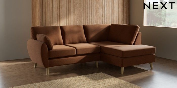 7.2.10 Buy Wilson Medium Corner Chaise - Right Hand Ripple Chenille Mid Rust Brown Retro Tapered - Light from the Next UK online shop Click here to use our accessible website