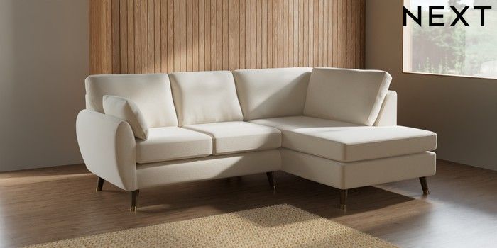 7.3.1 Buy Wilson Medium Corner Chaise - Right Hand Ripple Chenille Oyster Low Retro Tapered Metal Cap - Mid from the Next UK online shop Click here to use our accessible website
