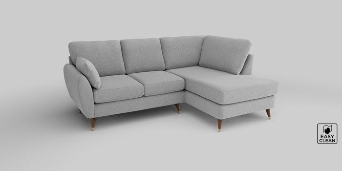 6.12.1 Buy Wilson Medium Corner Chaise - Right Hand Tweedy Blend Easy Clean Light Silver Grey Low Retro Tapered Metal Cap - Mid from the Next UK online shop Click here to use our accessible website