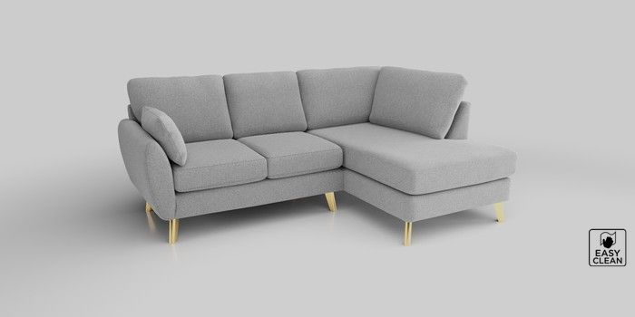 6.12.1 Buy Wilson Medium Corner Chaise - Right Hand Tweedy Blend Easy Clean Light Silver Grey Metal Tapered - Gold from the Next UK online shop Click here to use our accessible website