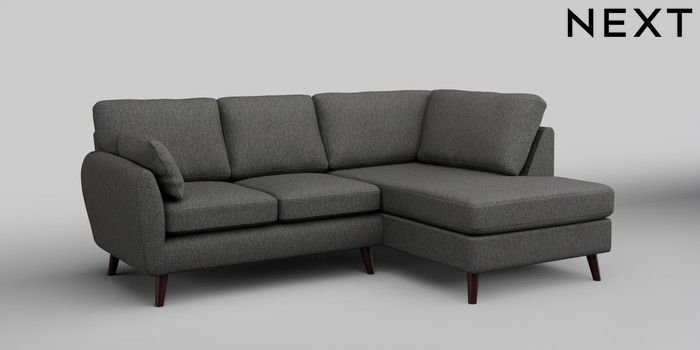 6.12.1 Buy Wilson Medium Corner Chaise - Right Hand Tweedy Chenille Dark Grey Retro Tapered - Dark Brown from the Next UK online shop Click here to use our accessible website