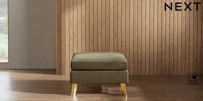 7.2.10 Buy Wilson Footstool Fine Chenille Easy Clean Dark Moss Green Metal Tapered - Gold from the Next UK online shop Click here to use our accessible website