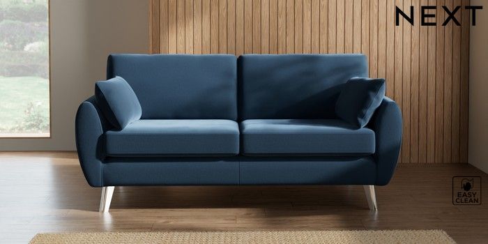 7.2.10 Buy Wilson 3 Seater Small Sofa Plush Velvet Easy Clean Airforce Blue Metal Tapered - Chrome from the Next UK online shop Click here to use our accessible website