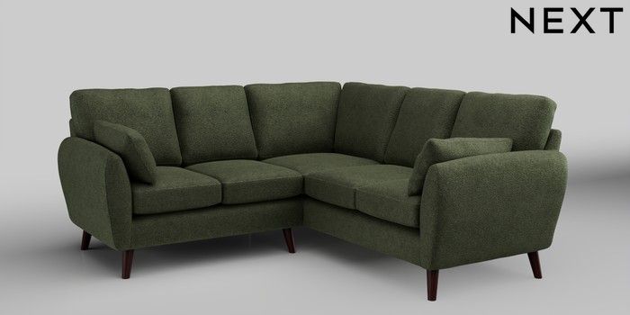 6.12.1 Buy Wilson Small Corner Sofa - Universal Boucle Chenille Dark Moss Green Retro Tapered - Dark Brown from the Next UK online shop Click here to use our accessible website
