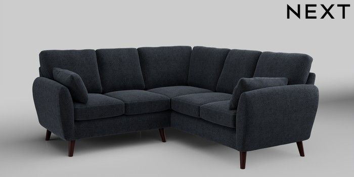 6.12.1 Buy Wilson Small Corner Sofa - Universal Boucle Chenille Dark Slate Blue Retro Tapered - Dark Brown from the Next UK online shop Click here to use our accessible website