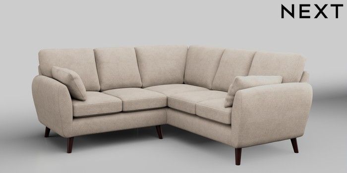 6.12.1 Buy Wilson Small Corner Sofa - Universal Boucle Chenille Oyster Retro Tapered - Dark Brown from the Next UK online shop Click here to use our accessible website