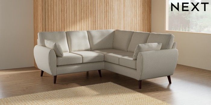 7.2.10 Buy Wilson Small Corner Sofa - Universal Chenille Stripe Moss Green Retro Tapered - Dark Brown from the Next UK online shop Click here to use our accessible website