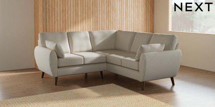 7.2.10 Buy Wilson Small Corner Sofa - Universal Chenille Stripe Moss Green Retro Tapered - Mid from the Next UK online shop Click here to use our accessible website