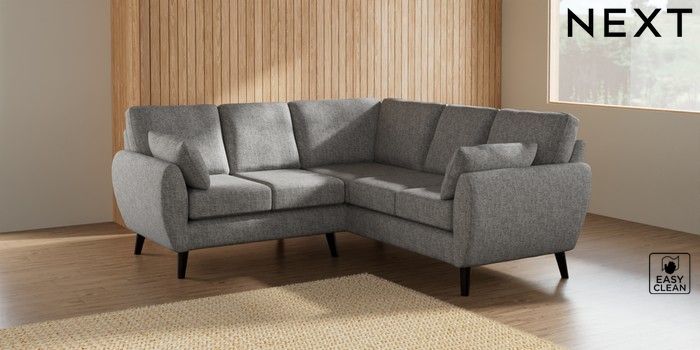 7.2.10 Buy Wilson Small Corner Sofa - Universal Chunky Boucle Easy Clean Light Grey Retro Tapered - Dark from the Next UK online shop Click here to use our accessible website