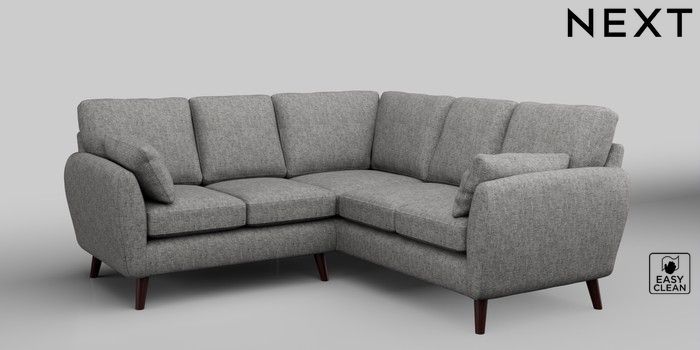 6.12.1 Buy Wilson Small Corner Sofa - Universal Chunky Boucle Easy Clean Light Grey Retro Tapered - Dark Brown from the Next UK online shop Click here to use our accessible website