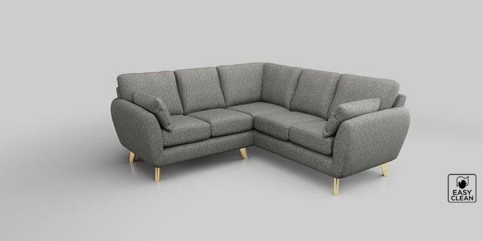 6.12.1 Buy Wilson Small Corner Sofa - Universal Chunky Boucle Easy Clean Mid Grey Metal Tapered - Gold from the Next UK online shop Click here to use our accessible website
