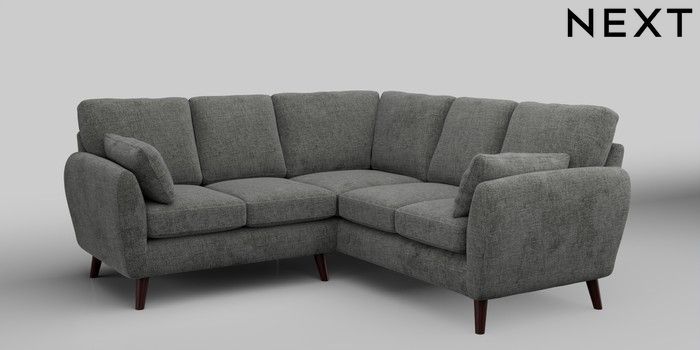 6.12.1 Buy Wilson Small Corner Sofa - Universal Chunky Chenille Dark Grey Retro Tapered - Dark Brown from the Next UK online shop Click here to use our accessible website
